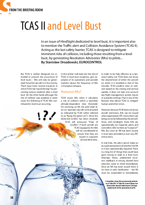 It is important also to mention the Traffic alert and Collision Avoidance System (TCAS II). Acting as the last safety barrier, TCAS is designed to mitigate imminent risks of collision, including those resulting from a level bust, by generating Resolution Advisories (RAs) to pilots...