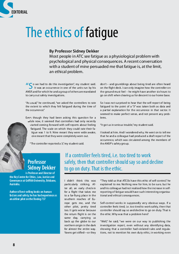 If a controller feels tired, i.e. too tired to work safely, then that controller should say so and decline to go on duty. That is the ethic.