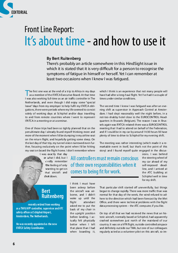 All controllers must remain conscious of their own responsibilities when it comes to being fit for work.