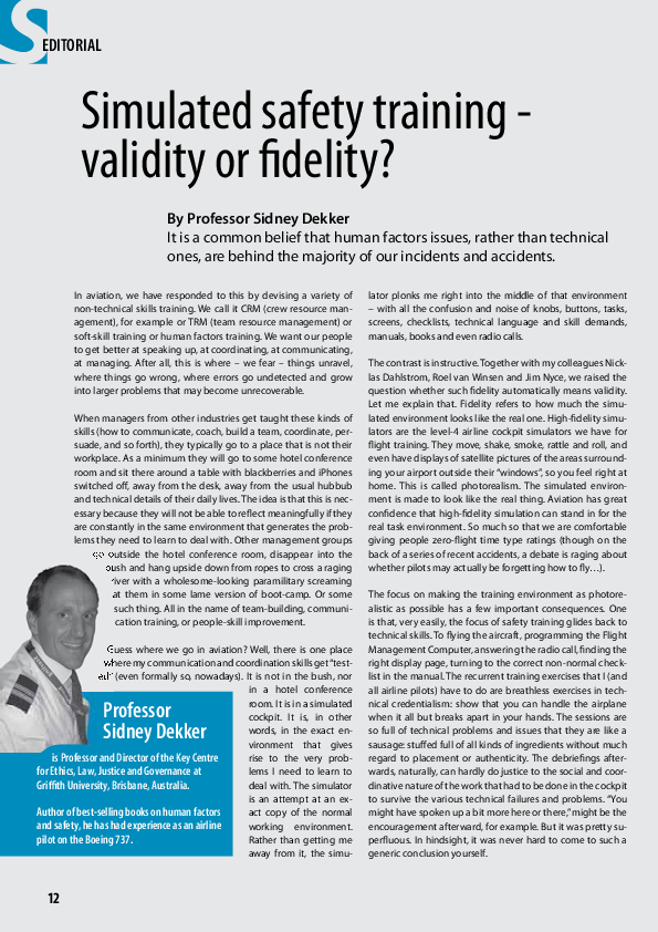 HindSight 14 - Simulated safety training - validity or fidelity?