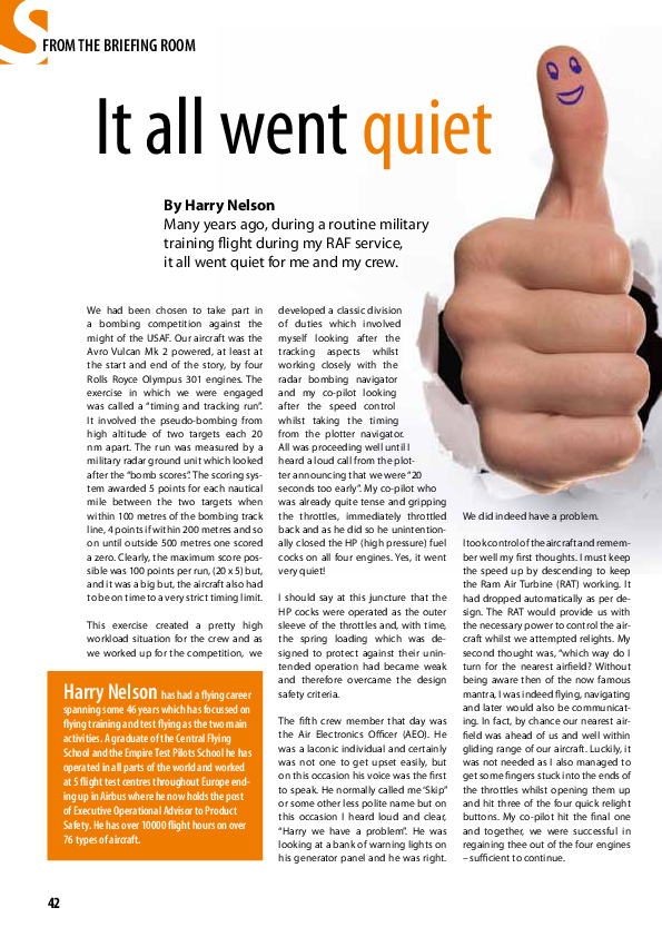 Many years ago, during a routine military training flight during my RAF service, it all went quiet for me and my crew.
