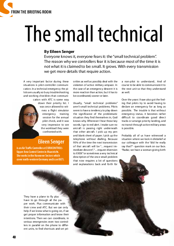 Everyone knows it, everyone fears it: the “small technical problem. The reason why we controllers fear it is because most of the time it is not what it is claimed to be: small. It grows. With every transmission we get more details that require action.