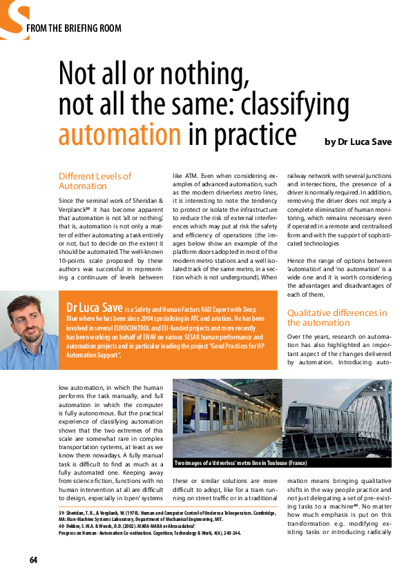 HindSight 20 - Not all or nothing, not all the same: classifying automation in practice