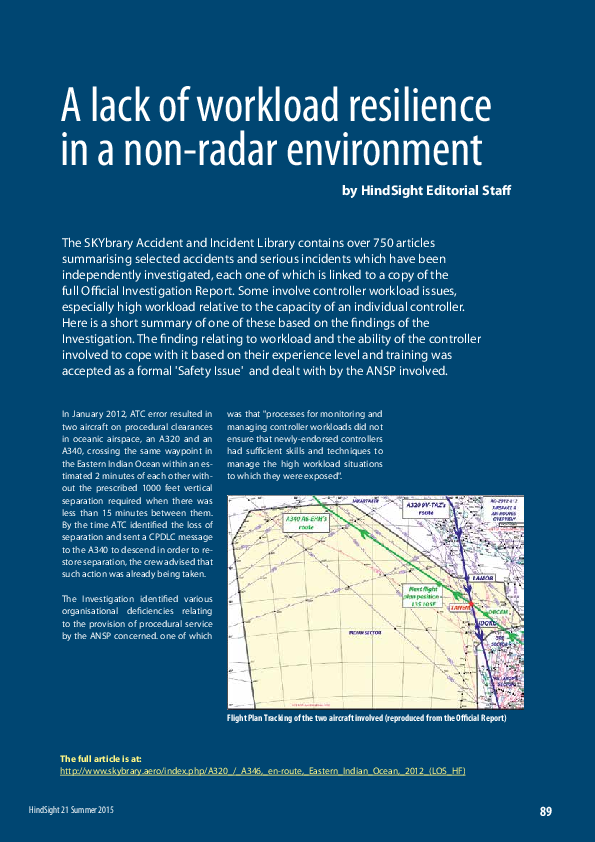 HindSight 21 - a lack of workload resilience in a non-radar environment
