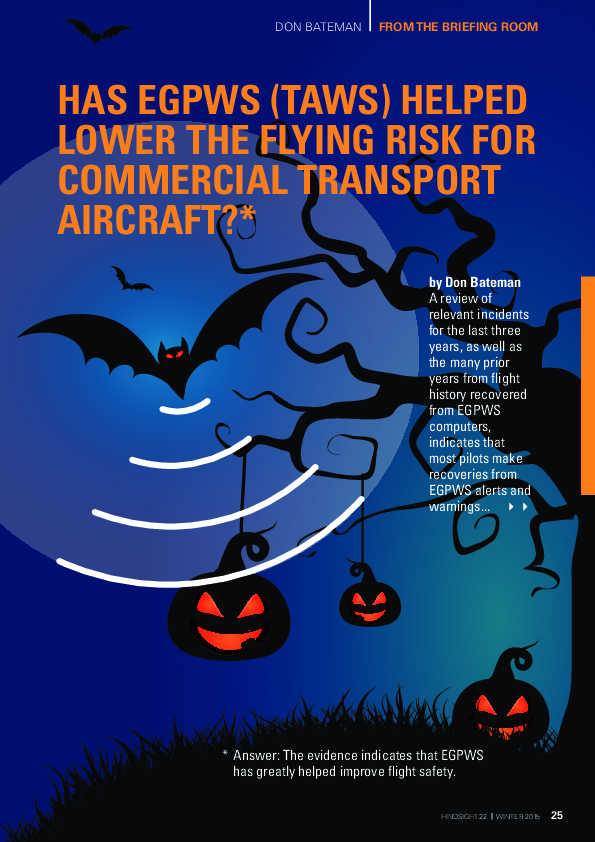 HindSight 22 - Has EGPWS (TAWS) helped lower the flying risk for commercial transport aircraft?