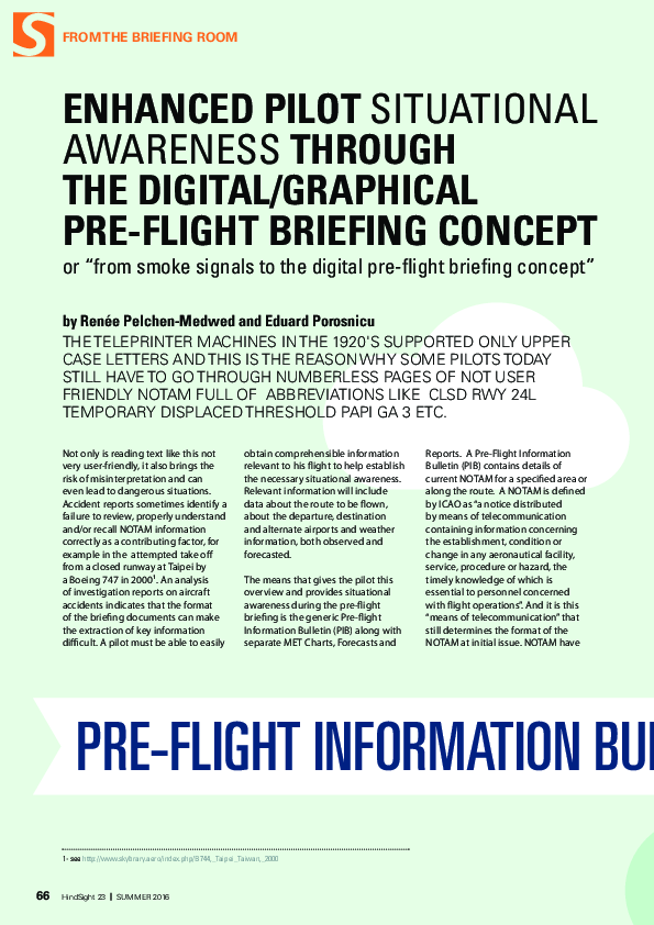 HindSight 23 - Enhanced pilot situational awareness through the digital/graphical pre-flight briefin