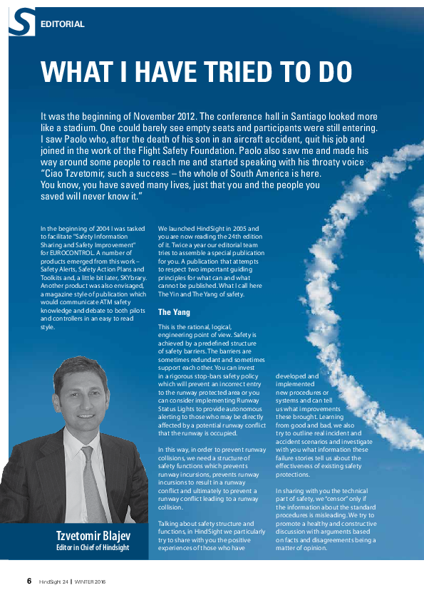 Editorial from HindSight 24 published December 2016 and focused on preventing runway collisions