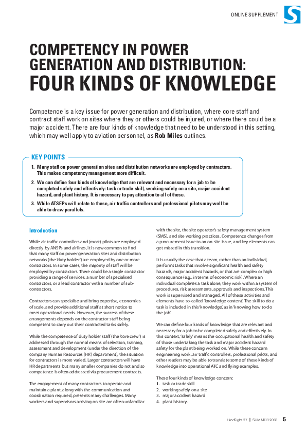 HindSight 27 - Competency in power generation and distribution: four kinds of knowledge