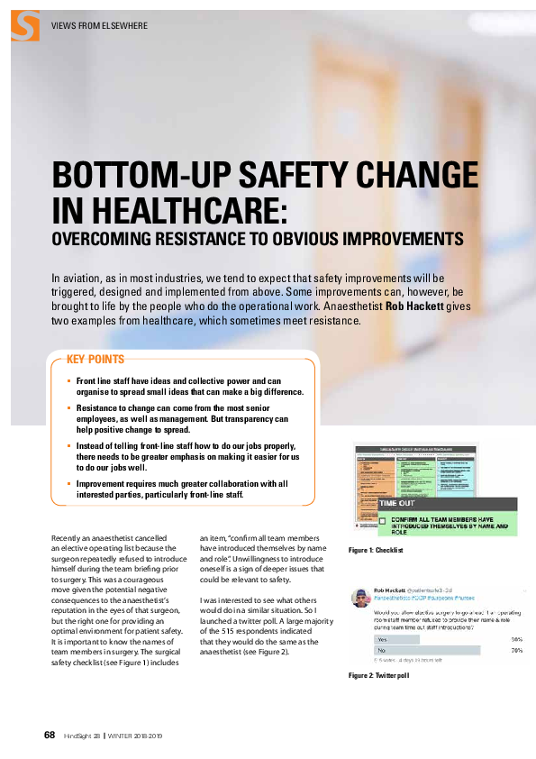 HindSight 28 - Bottom-up safety change in healthcare: overcoming resistance to obvious improvements