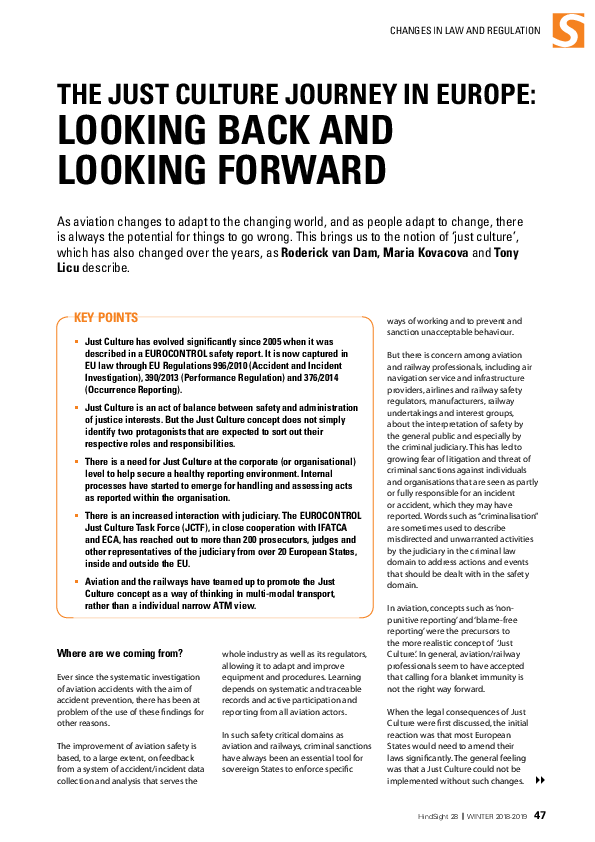 HindSight 28 - The just culture journey in Europe: looking back and looking forward