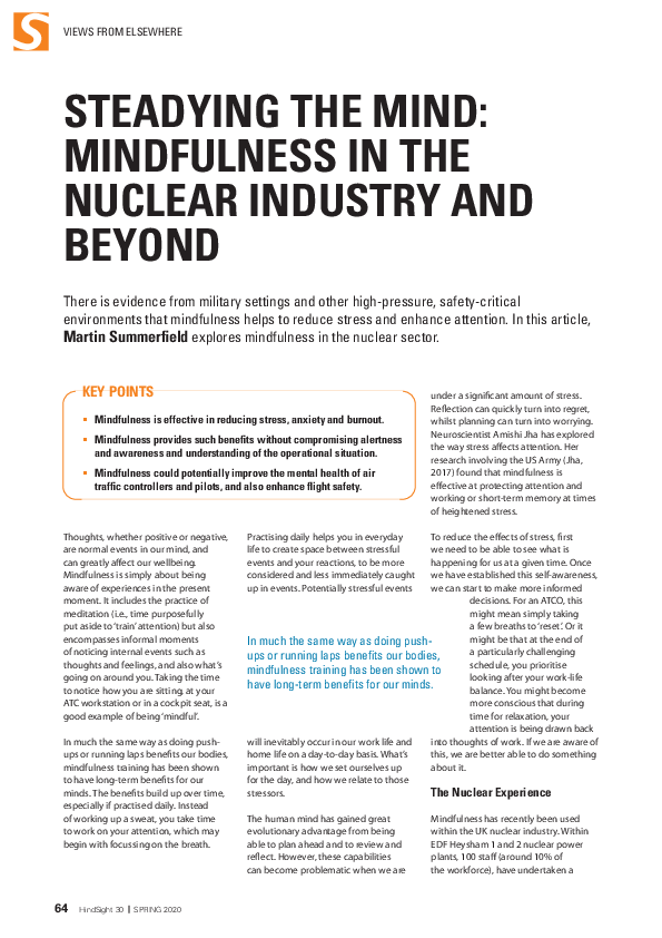 HindSight 30 - Steadying the mind: mindfulness in the nuclear industry and beyond