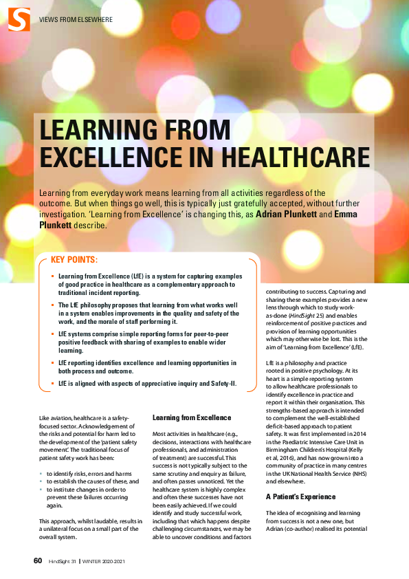 HindSight 31 - Learning from excellence in healthcare