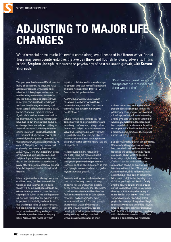 Hindsight 32 - Adjusting to major life changes