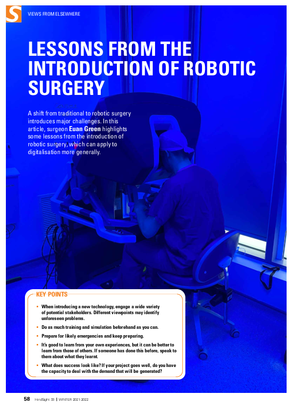 Hindsight 33 - Lessons from the introduction of robotic surgery