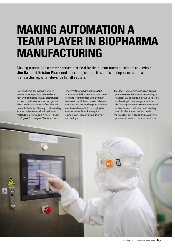 Hindsight 33 - Making automation a team player in biopharma manufacturing