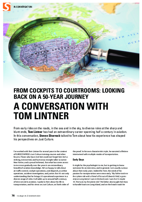 HindSight 35 - From cockpits to courtrooms: Looking back on a 50-year journey. A conversation with Tom Lintner
