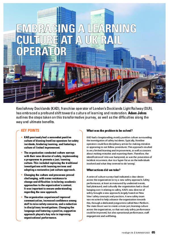 HindSight 35 - Embracing a learning culture at a UK rail operator