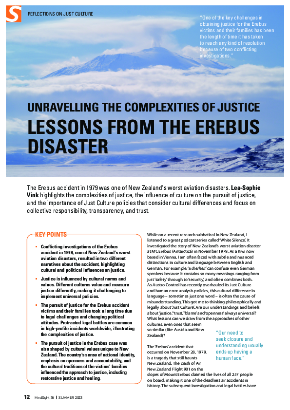 HindSight 35 - Unravelling the complexities of justice: Lessons from the Erebus disaster