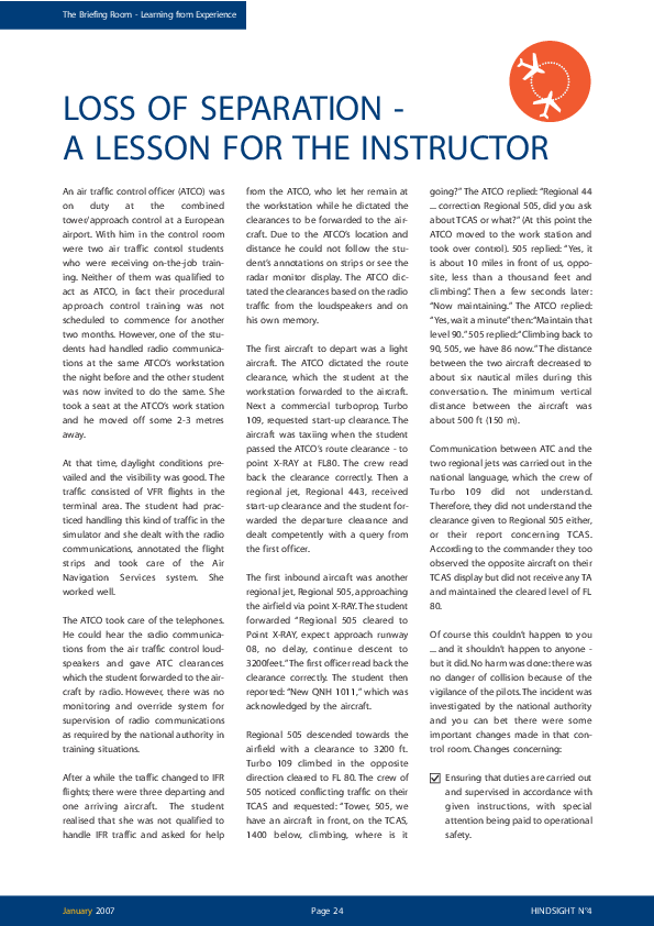 HindSight 4 - Loss of Separation - A Lesson for the Instructor