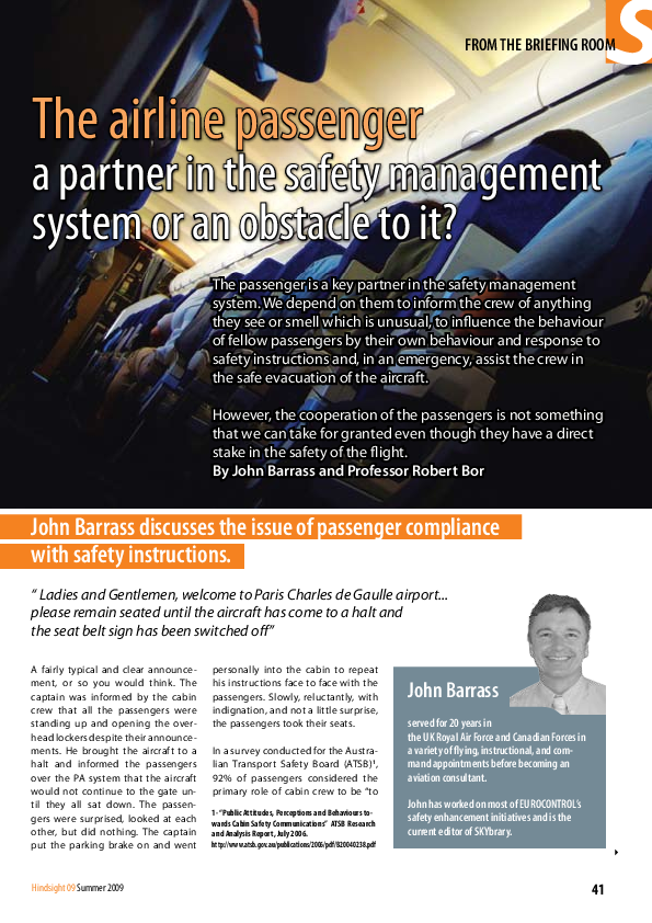 HindSight 9 - The airline passenger - a partner in the safety management system or an obstacle to it