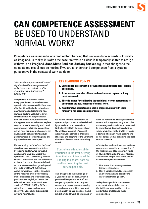 HS25: Can competence assessment be used to understand normal work?