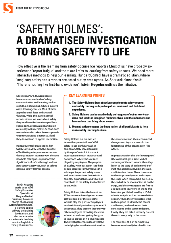 HS25: Safety Holmes: a dramatised investigation to bring safety to Life