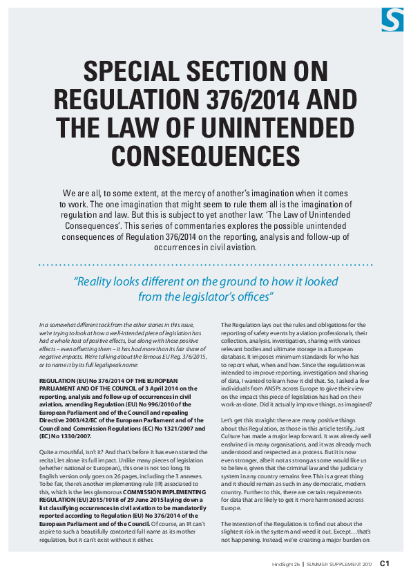 HS25: Special section on Regulation 376/2914 and the law of unintended consequences