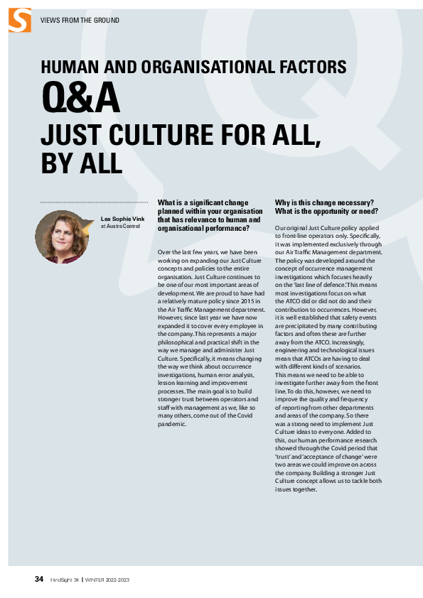 Human and organisational factors Q&A: Just culture for all, by all (HS34)