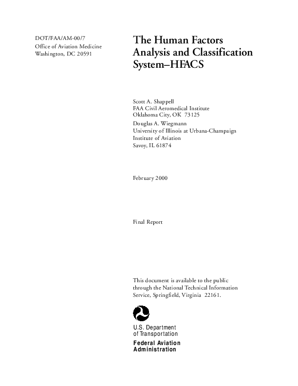 DOT/FAA/AM-00/7. This paper describes the development and theoretical underpinnings of HFACS