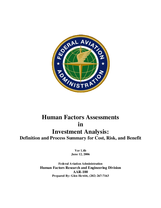 This document provides a brief description of a Human Factors Assessment especially those conducted during the Investment Analysis process.