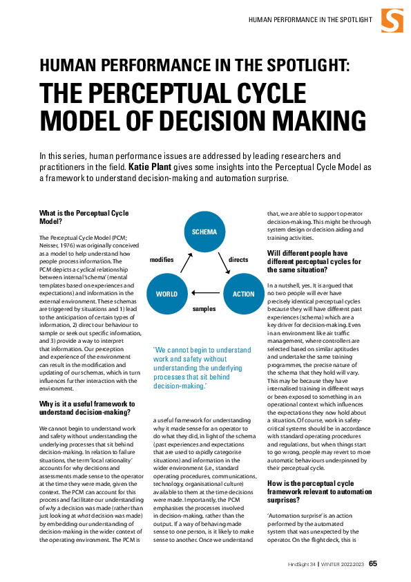 Human performance in the spotlight: The perceptual cycle model of decision making (HS34)