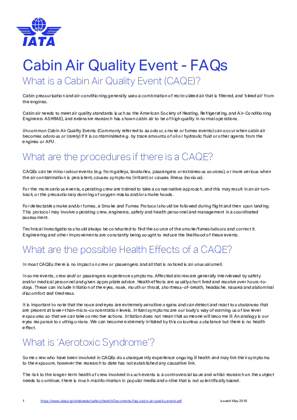 IATA Cabin Air Quality Event - FAQs