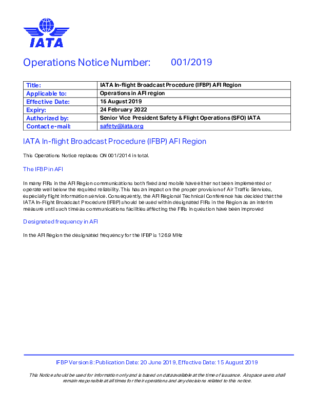 IATA In-flight Broadcast Procedure (IFBP) AFI Region
