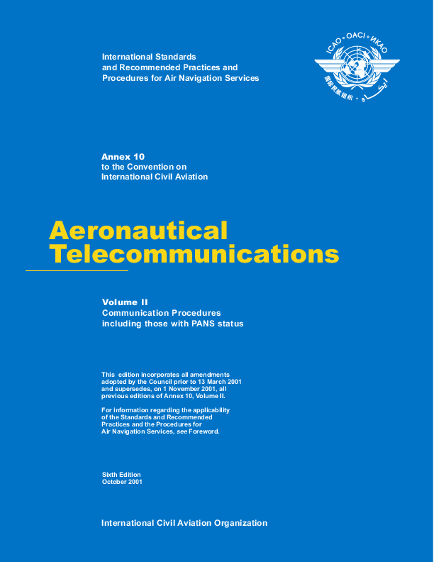 ICAO Annex 10 Aeronautical Telecommunication Volume II Communicating Procedures Sixth Edition October 2001