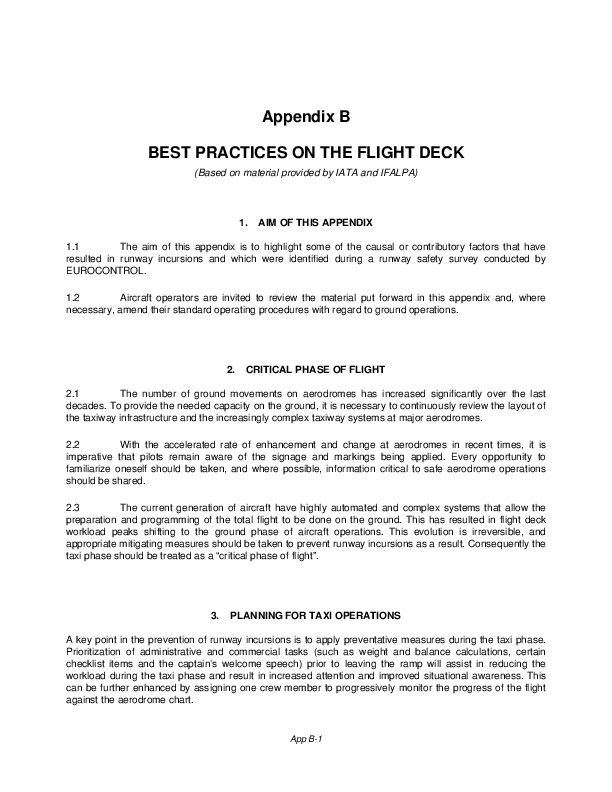 ICAO Doc 9870 - Manual on the Prevention of Runway Incursions: Appendix B - Best Practices on the Flight Deck