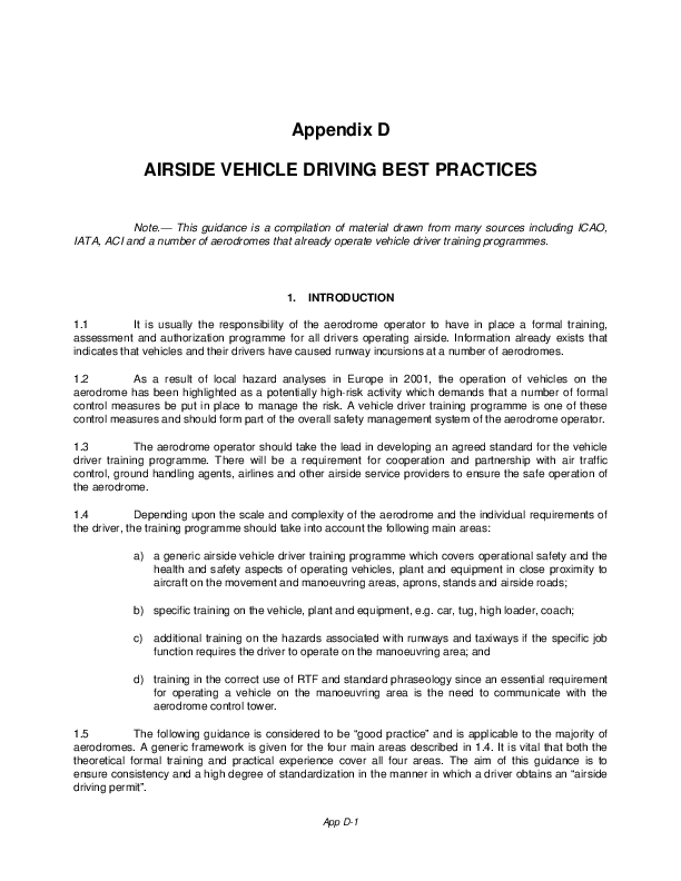 ICAO Doc 9870 App D - Airside Vehicle Driving Best Practices