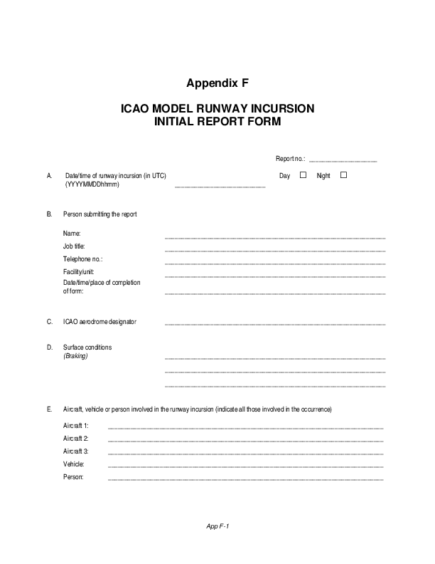 ICAO Doc 9870 App F - Model Runway Incursion Initial Report Form