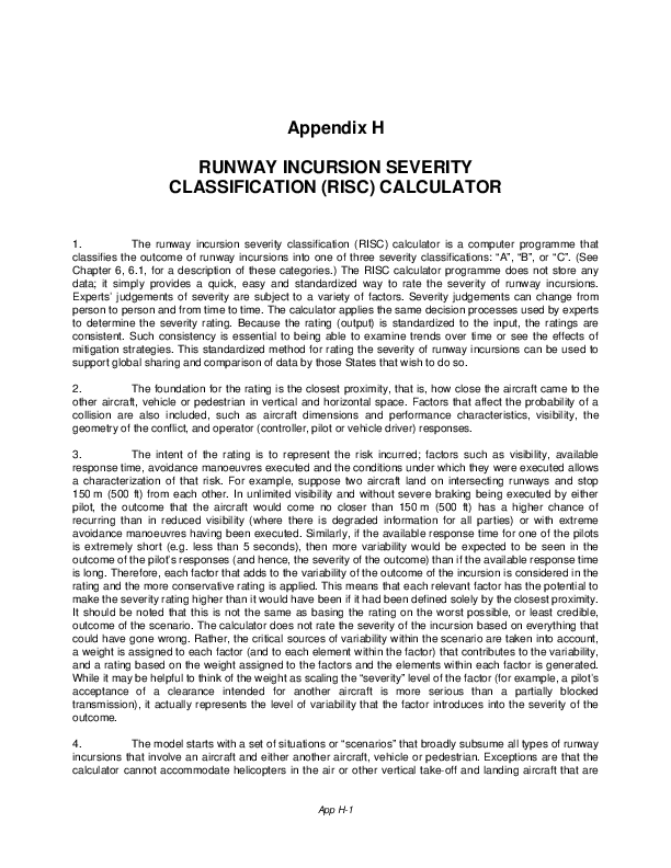 ICAO Doc 9870 App H - Runway Incursion Severity Classification (RISC) Calculator