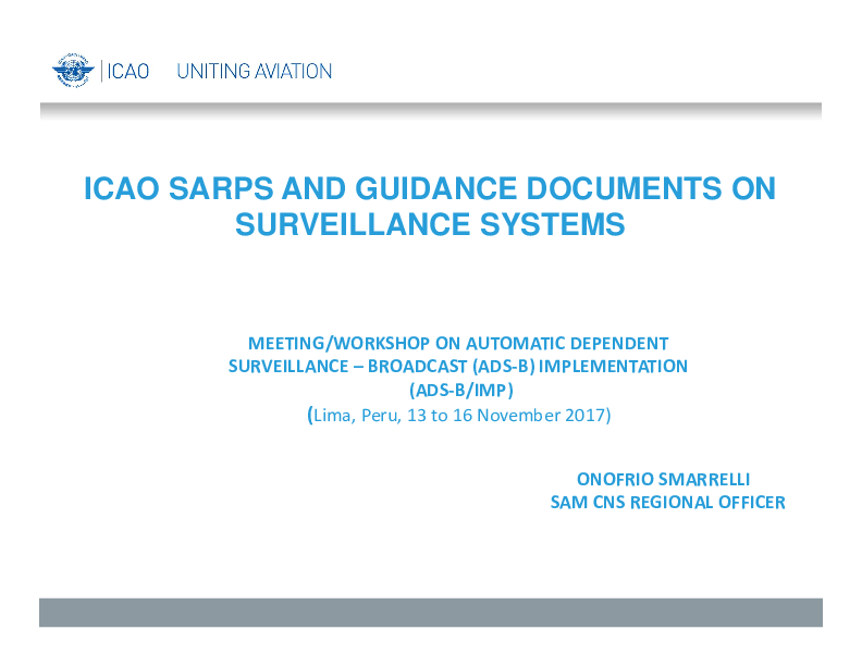 ICAO SARPS and Guidance Documents on Surveillance Systems