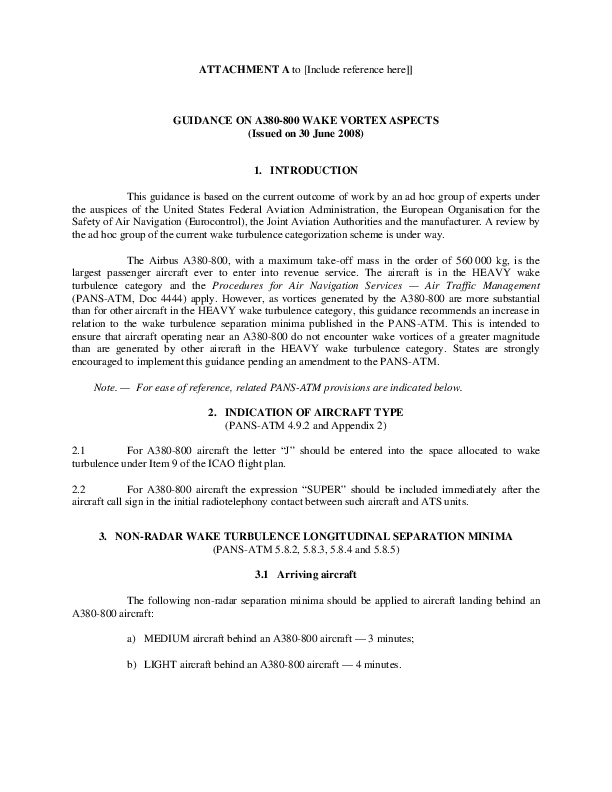 ICAO Wake Vortex Aspects of A380 Aircraft