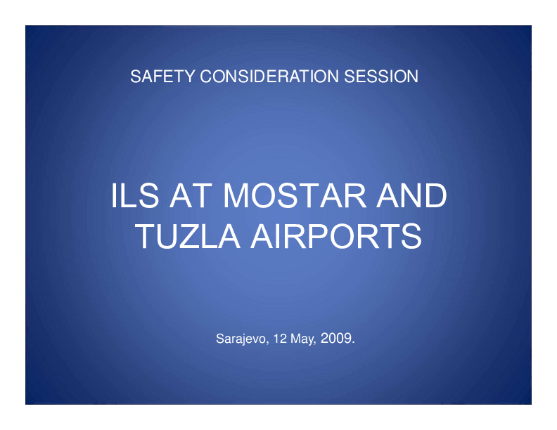 This presentation shows the situations at Mostar and at Tuzla airports and the process of introducing ILS systems at both airports.