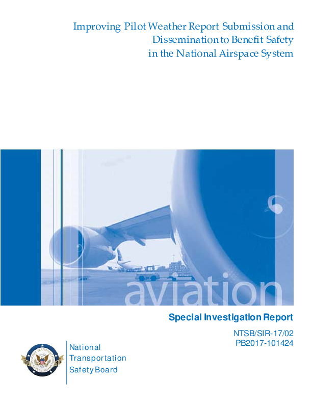 The National Transportation Safety Board (NTSB) investigated several recent incidents and accidents and engaged in discussions with members of various pilot weather report (PIREP) user groups that revealed deficiencies in the handling of PIREP information that resulted in delays, errors, and data losses.