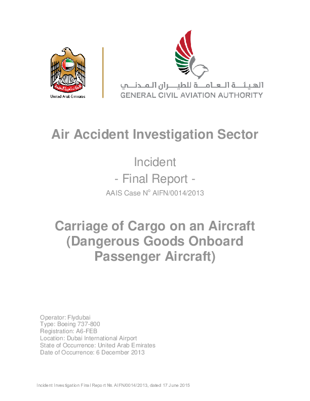 Incident Final Report AAIS Case No AIFN/0014/2013 Dangerous Goods Onboard Passenger Aircraft