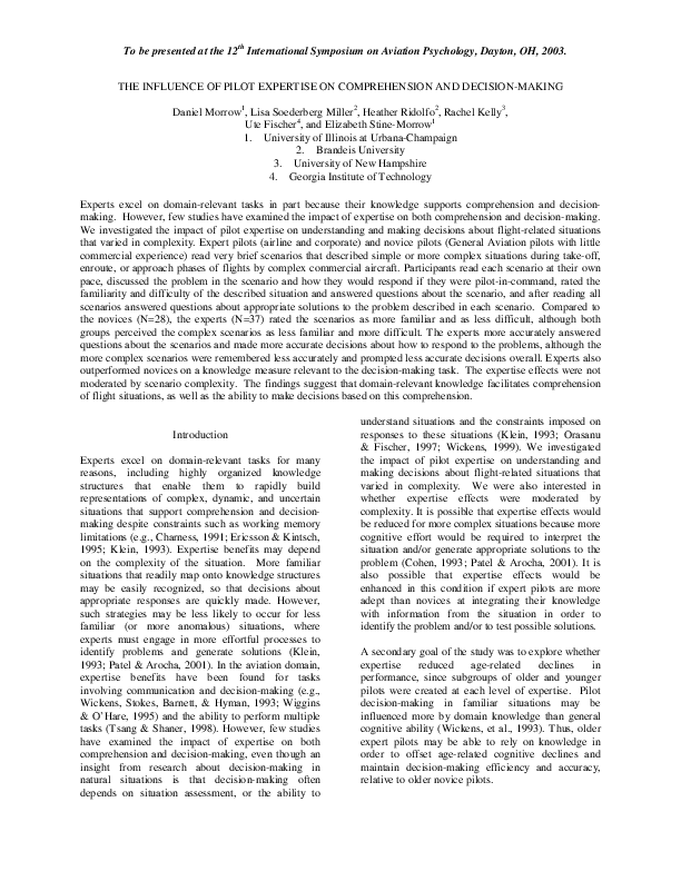 THE INFLUENCE OF PILOT EXPERTISE ON COMPREHENSION AND DECISION-MAKING
