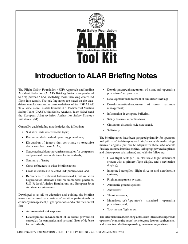 An introduction to the Flight Safety Foundation Approach and Landing Accident Reduction (ALAR) briefing notes