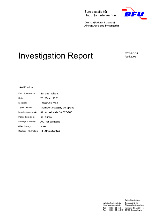 Investigation Report 5X004-0/01 (Serious Incident A320 near Frankfurt, 21 March 2001 - AW LOC)