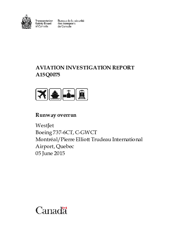 Investigation Report A15Q0075: Runway Overrun B736 (C-GWCT), Montreal QC Canada, 5 June 2015