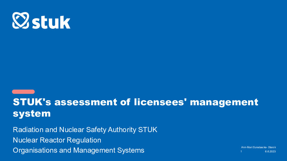 June 2023 Helsinki Industry Day Presentation - Radiation and Nuclear Safety Authority