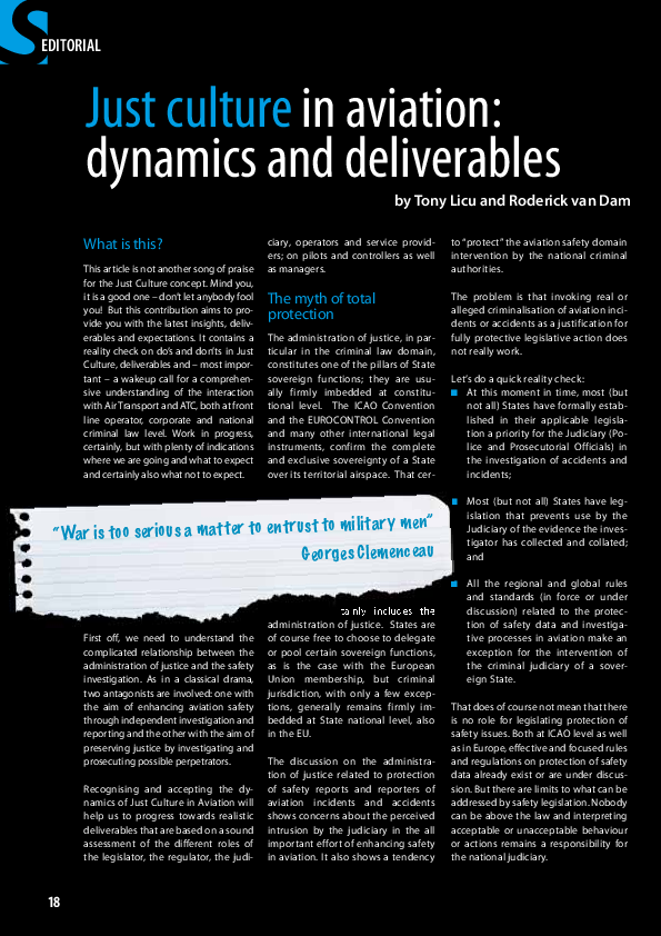 Just Culture in aviation: dynamics and deliverables