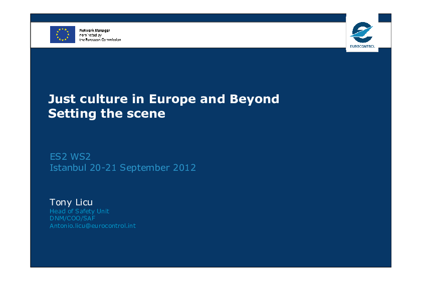 This presentation summarizes the definition of Just Culture and why is it needed and necessary to be implemented in Europe.